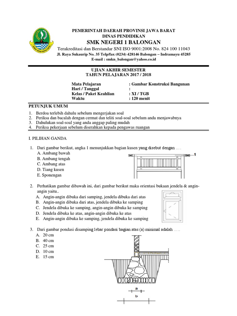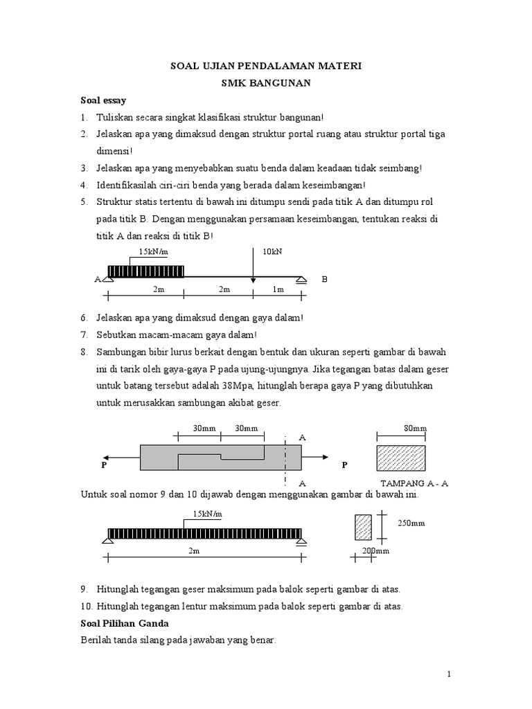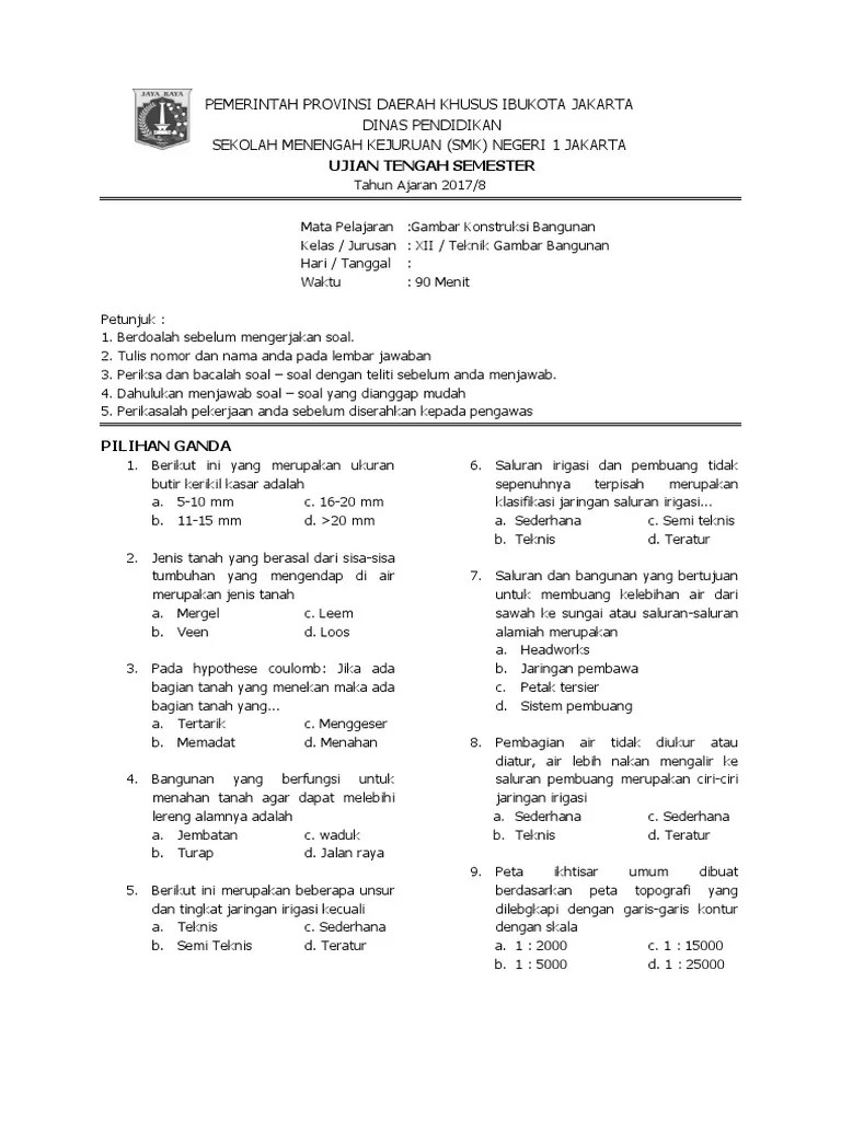 Pdf Kualitas Butir Soal Ujian Kontruksi Dan Utilitas Gedung Kelas Xi Smk Kompetensi Keahlian Desain Pemodelan Dan Informasi Bangunan from i1.rgstatic.net Contoh soal pilihan ganda konstruksi bangunan. We did not find results for: Check spelling or type a new query. Maybe you would like to learn more about one of these?
