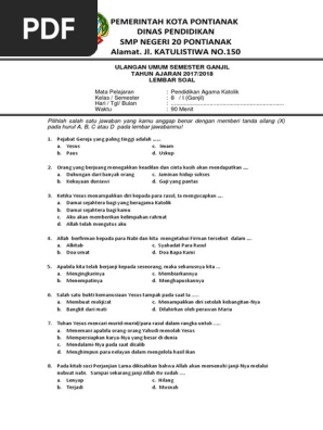 Soal pts agama katolik smp kelas 7 semester 2 kurikulum 2013 adalah artikel terbaru yang blog siswa adriyan bagikan pada kesempatan kali ini.