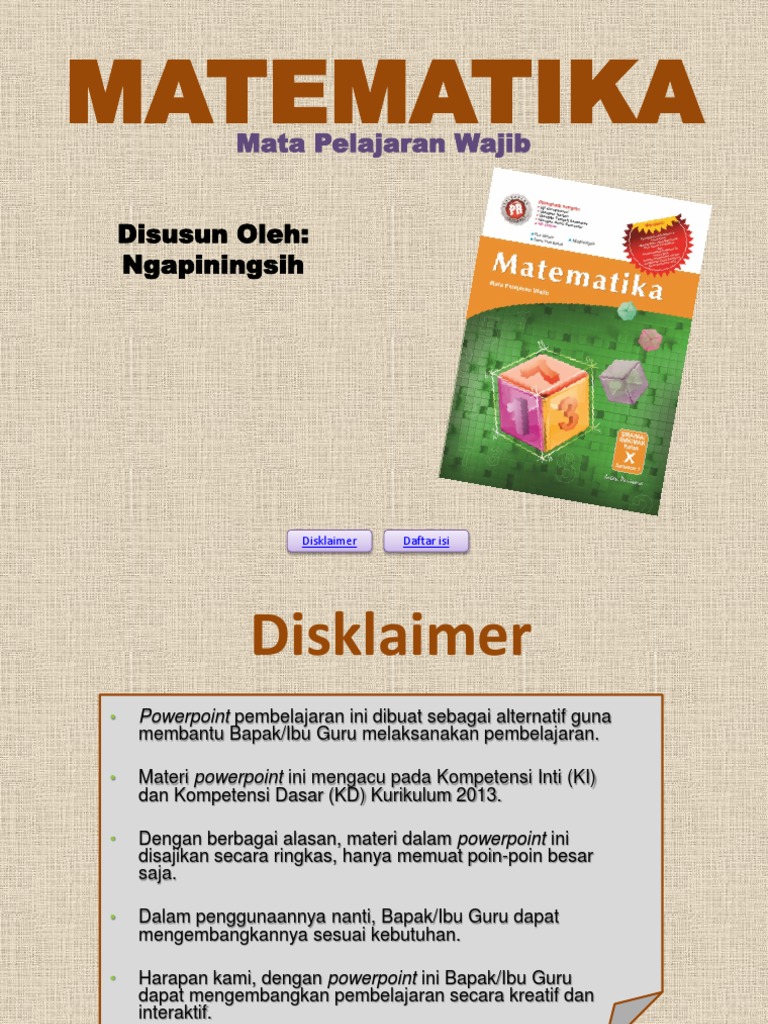 Maybe you would like to learn more about one of these? Materi matematika wajib kelas 10. Check spelling or type a new query. We did not find results for: